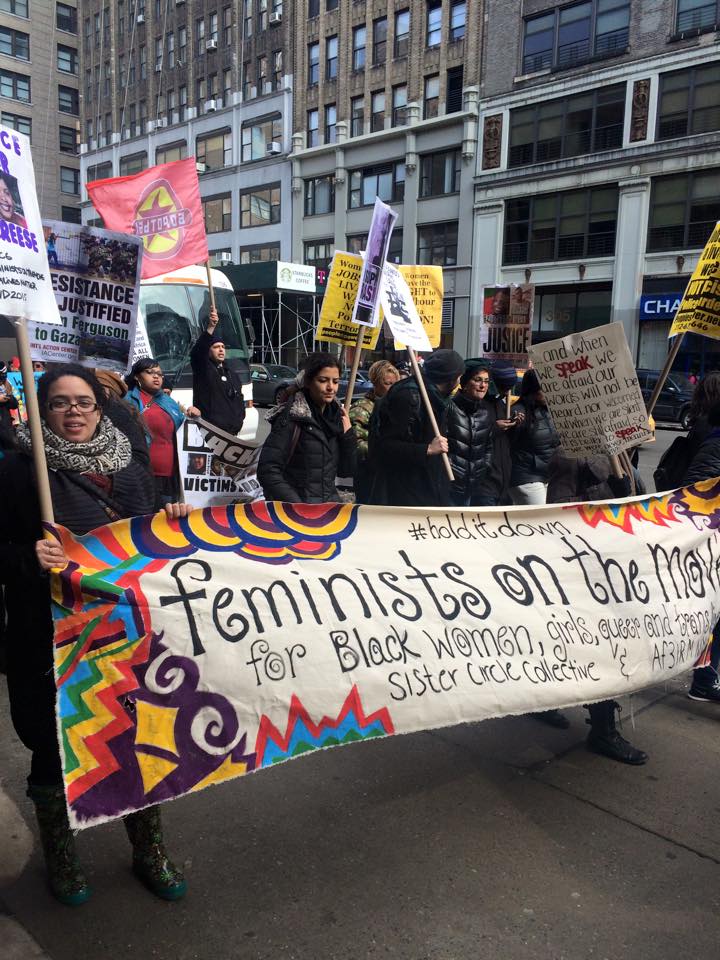 The Sister Circle Collective participated under the name #FeministsOnTheMove, creating a space similar to that of the previous contingent for Millions March NYC in December 2014. Core Sisters Dairanys and Lanai spoke their truths in front of precincts and elected offices on why transnational feminist beliefs and the embodiment of “the personal is political” called the SCC to action once again.