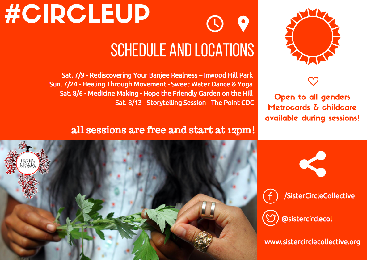 This event is brought to you by CCCADI, Friends of the Highline, Casitas Wisdom, Harriet’s Apothecary, Sacred Vibes Apothecary, and Sister Circle Collective.